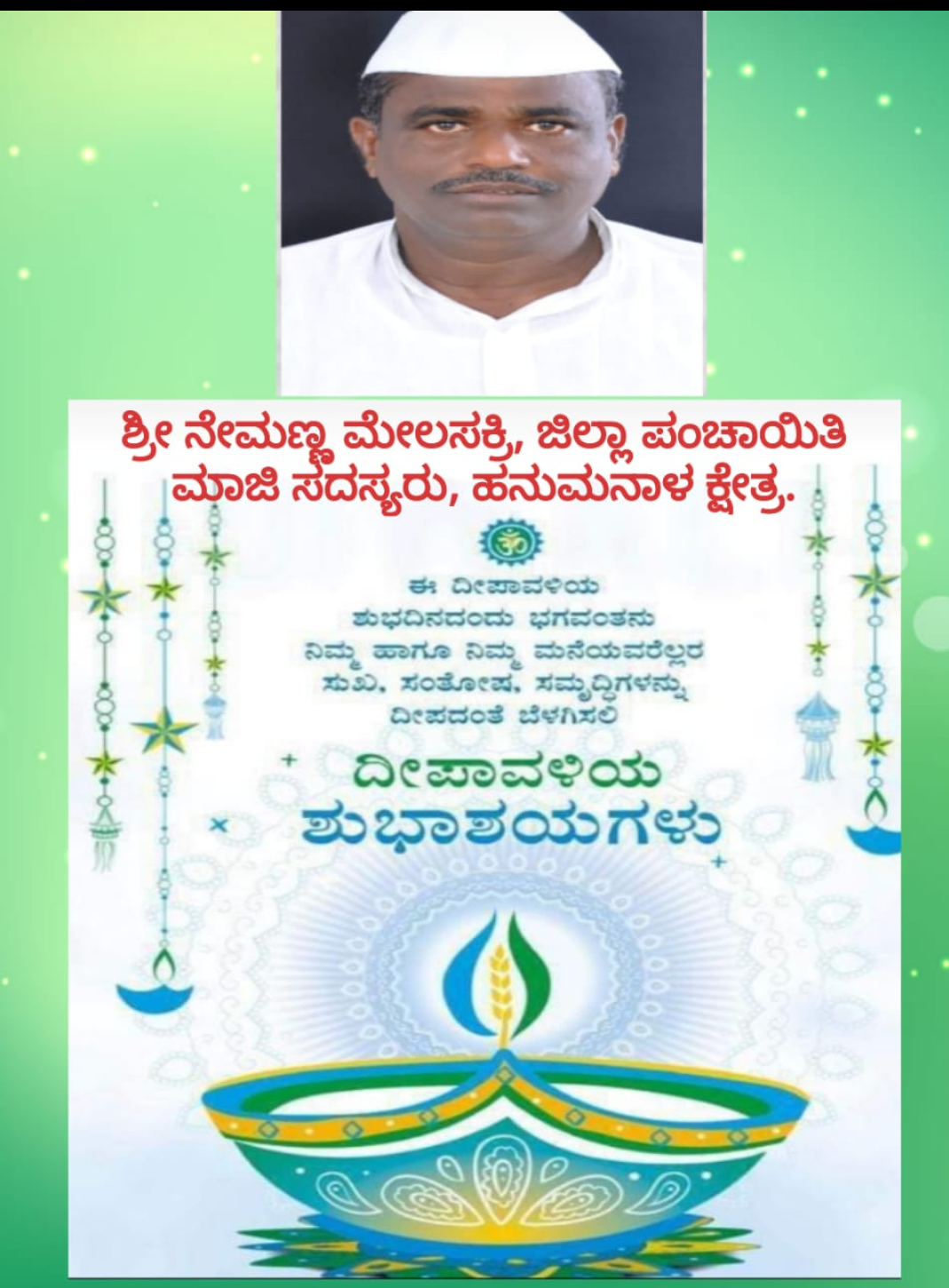 – ನಾಡಿನ ಸಮಸ್ತ ಜನತೆಗೆ ಹನುಮನಾಳ ಜಿಲ್ಲಾ ಪಂಚಾಯಿತಿ ಮಾಜಿ ಸದಸ್ಯ ಶ್ರೀ ನೇಮಣ್ಣ ಮೇಲಸಕ್ರಿ ಅವರಿಂದ ದೀಪಾವಳಿ ಹಬ್ಬದ ಶುಭಾಶಯಗಳು..!