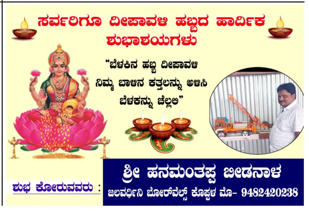 – ನಾಡಿನ ಸಮಸ್ತ ಜನತೆಗೆ ದೀಪಾವಳಿ ಹಬ್ಬದ ಶುಭಾಶಯಗಳು..!