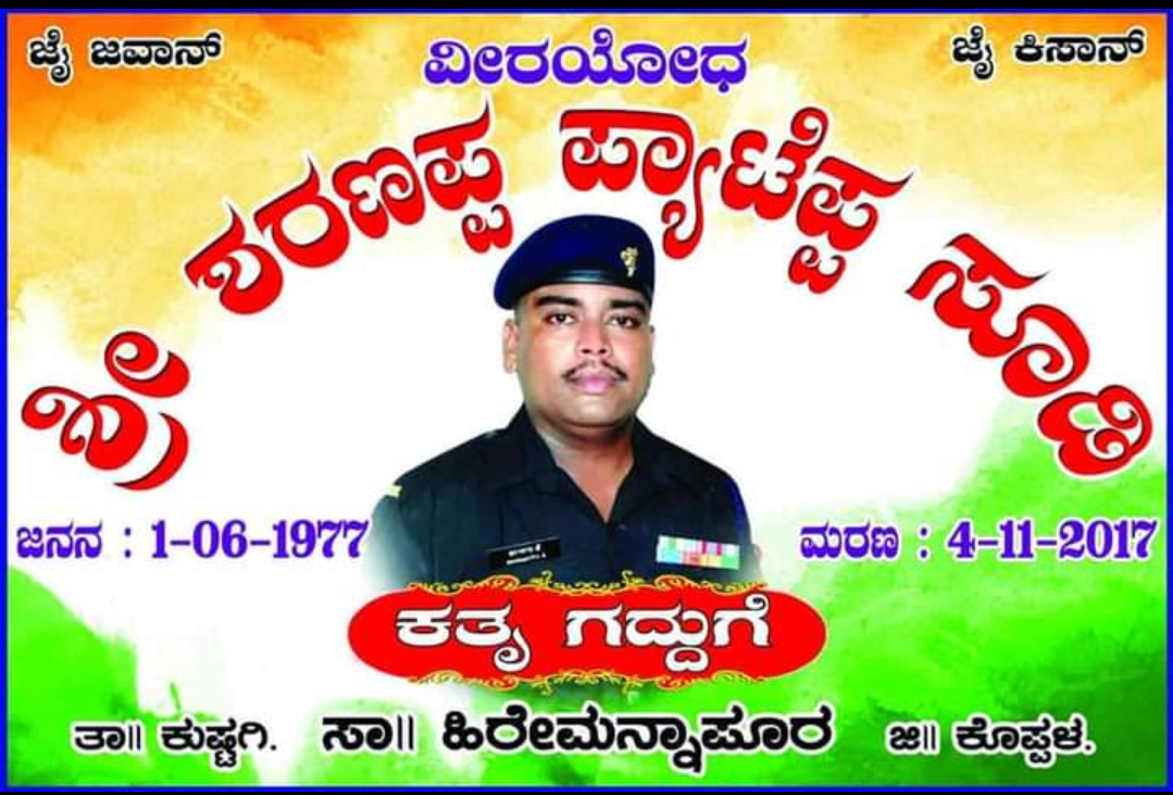 ಕೊಪ್ಪಳ (ಕುಷ್ಟಗಿ) : ದೇಶ ಸೇವೆಯಲ್ಲಿ ಪ್ರಾಣ ತ್ಯಾಗ ಮಾಡಿದ ಯೋಧ ಶರಣಪ್ಪ ಪ್ಯಾಟೆಪ್ಪ ಸೂಡಿ ಅವರ ಕಂಚಿನ ಪುತ್ತಳಿಯನ್ನು ದಿನಾಂಕ 17-11-2021 ರಂದು ಜಿಲ್ಲೆಯ ಕುಷ್ಟಗಿ ತಾಲೂಕಿನ ಹಿರೇಮನ್ನಾಪೂರ ಗ್ರಾಮದ ಗುರು-ಹಿರಿಯರು ಹಾಗೂ ಪೂರ್ಣ ಕುಂಬ ಹೊತ್ತ ಮಹಿಳೆಯರು ಸೇರಿ ವೈಭವದ ಸಕಲ ವಾದ್ಯಗಳೊಂದಿಗೆ ಅದ್ಧೂರಿಯಾಗಿ ಗ್ರಾಮದಲ್ಲಿ ಸ್ವಾಗತಿಸಲಾಗಿತು..!