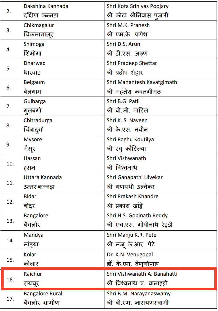 2009 ಕ್ಕಿಂತಲೂ ಮೊದಲು ಸಕ್ರಿಯ ಕಾರ್ಯಕರ್ತನಾಗಿ ಬಿಜೆಪಿಯಲ್ಲಿರುವ ವಿಶ್ವನಾಥ ಬನಹಟ್ಟಿ ಮೂಲತಃ ಚಿಕ್ಕೋಡಿಯವರು. ಹಾಲುಮತ ಸಮುದಾಯಕ್ಕೆ ಸೇರಿದ ಇವರು ಕೃಷಿ ಜೊತೆಗೆ ಪಕ್ಕಾ ವ್ಯಾಪಾರಿ. ರಾಯಚೂರು ಹಾಗೂ ಯಾದಗಿರಿ ಜಿಲ್ಲೆಗಳಲ್ಲಿ ಜರುಗಿದ ಸಾಕಷ್ಟು ಚುನಾವಣೆಗಳಲ್ಲಿ ಬಿಜೆಪಿ ಉಸ್ತುವಾರಿವಹಿಸಿಕೊಂಡು, ಪಕ್ಷ ಮುನ್ನೆಡಿಸಿದ ಜವಾಬ್ದಾರಿ ಇವರಿಗಿದೆ. 2009 ರಲ್ಲಿ ಜರುಗಿದ ದೇವದುರ್ಗ ಉಪ ಚುನಾವಣೆಯಲ್ಲಿ ಶಾಸಕ ಶಿವನಗೌಡ ನಾಯಕ ಪರ ಜವಾಬ್ದಾರಿ, ರಾಯಚೂರು-ಯಾದಗಿರಿ ಜಿಲ್ಲೆಗಳಲ್ಲಿನ ತಾಪಂ, ಜಿಪಂ, ಪಟ್ಟಣ ಪಂಚಾಯಿತಿ, ನಗರಸಭೆ ಹಾಗೂ ಲೋಕಸಭಾ ಚುನಾವಣೆಯಲ್ಲಿ ರಾಯಚೂರು-ಯಾದಗಿರಿ ಜಿಲ್ಲೆಗಳ ಉಸ್ತುವಾರಿವಹಿಸಿಕೊಂಡ ಪಕ್ಷ ನಿಷ್ಠೆ ಜೊತೆಗೆ ವಿವಿಧ ಜವಾಬ್ದಾರಿ ಪರಿಗಣಿಸಿ ಟಿಕೇಟ್ ನೀಡಿರುವುದನ್ನು ಪಕ್ಷದ ಮೂಲಗಳು ಸ್ಪಷ್ಟಪಡಿಸಿವೆ..!!