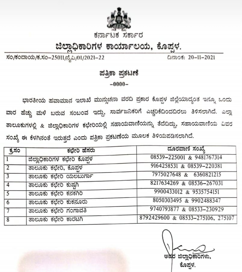 ಕೊಪ್ಪಳ : ಜಿಲ್ಲೆಯಾದ್ಯಂತ ಇನ್ನೂ ಒಂದು ವಾರ ಮಳೆ ಸುರಿಯಲಿದೆ ಎಚ್ಚರಿಕೆವಹಿಸಿಕೊಳ್ಳುವಂತೆ ಜಿಲ್ಲಾಧಿಕಾರಿ ವಿಕಾಸ ಕಿಶೋರ್ ಸುರಳ್ಕರ ಅವರು ಸೂಚನೆ ನೀಡಿದ್ದಾರೆ. ಹವಾಮಾನ ಇಲಾಖೆ ಮುನ್ಸೂಚನೆ ಪ್ರಕಾರ ಈ ಸಲಹೆ ನೀಡಲಾಗಿದೆ. ಜಿಲ್ಲೆಯ ತುಂಗಭದ್ರಾ ಜಲಾಶಯದ ಮೂಲಕ ಒಂದು ಲಕ್ಷ ಕ್ಯೂಸೆಕ್ ನೀರನ್ನು ಹೊರಬಿಡಲಾಗುತ್ತಿದೆ. ನದಿ ಪಾತ್ರದ ಜನರು ಎಚ್ಚರಿಕೆವಹಿಸಬೇಕೆಂದು ಜೊತೆಗೆ ಜಿಲ್ಲಾಧಿಕಾರಿ ಕಚೇರಿ ಸೇರಿದಂತೆ 7 ತಾಲ್ಲೂಕ ಕೇಂದ್ರಗಳಲ್ಲಿ ತೆರೆಯಲಾದ ಸಹಾಯವಾಣಿ ನಂಬರಗಳನ್ನು ಸದುಪಯೋಗಪಡಿಸಿಕೊಳ್ಳುವಂತೆ ಜಿಲ್ಲಾಧಿಕಾರಿಗಳು ಮನವಿ ಮಾಡಿಕೊಂಡಿದ್ದಾರೆ..!!