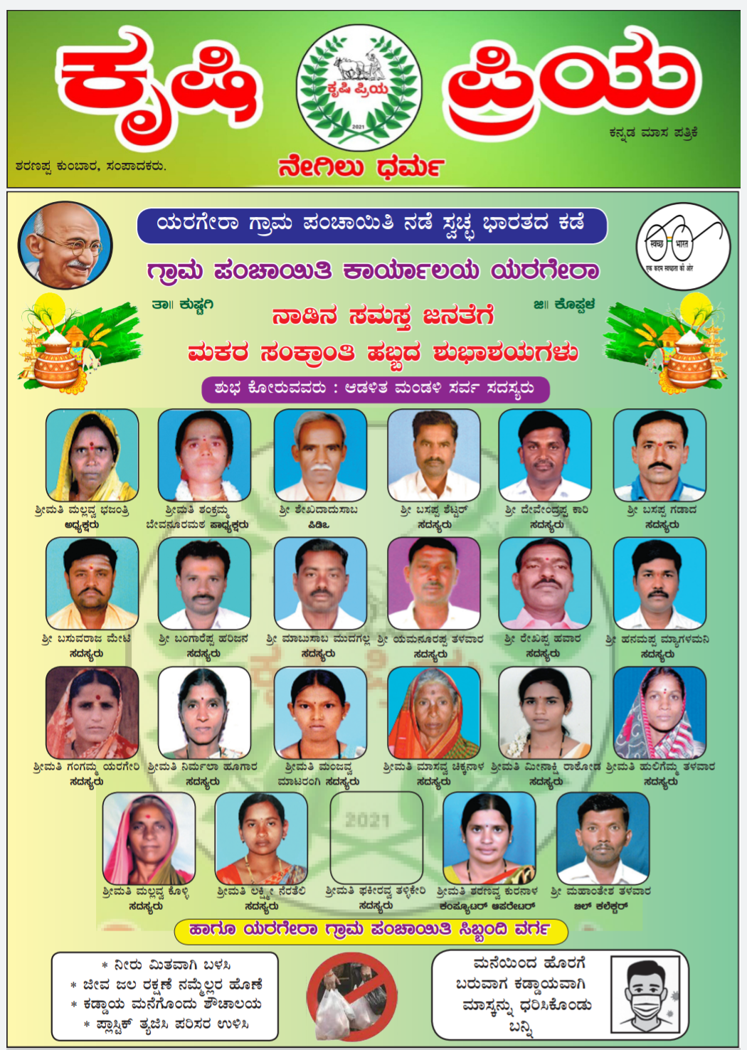 ಯರಗೇರಾ ಗ್ರಾಮ ಪಂಚಾಯತಿ ವತಿಯಿಂದ ನಾಡಿನ ಸಮಸ್ತ ಜನತೆಗೆ ಮಕರ ಸಂಕ್ರಾಂತಿ ಹಬ್ಬದ ಶುಭಾಶಯಗಳು..!