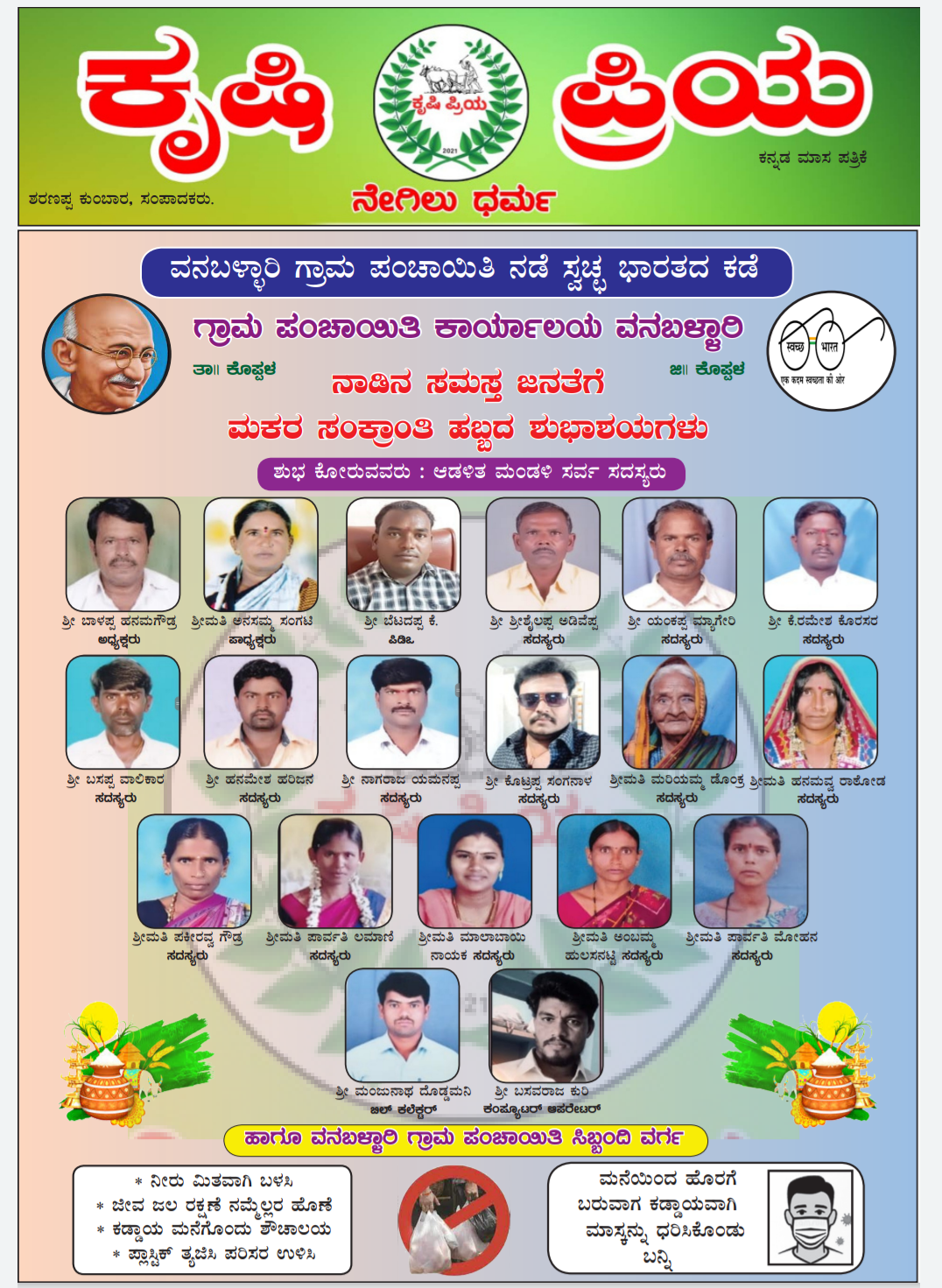 ವನಬಳ್ಳಾರಿ ಗ್ರಾಮ ಪಂಚಾಯತಿ ವತಿಯಿಂದ ನಾಡಿನ ಸಮಸ್ತ ಜನತೆಗೆ ಮಕರ ಸಂಕ್ರಾಂತಿ ಹಬ್ಬದ ಶುಭಾಶಯಗಳು..!