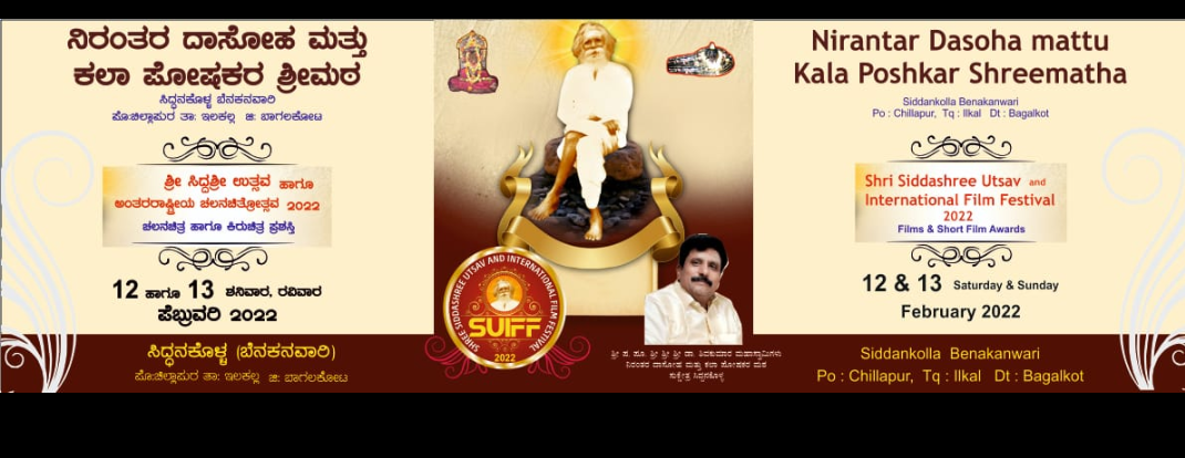 ಬಾಗಲಕೋಟೆ (ಕೊಪ್ಪಳ) : ಬಾಗಲಕೋಟೆ ಜಿಲ್ಲೆಯ ಇಲಕಲ್ ತಾಲೂಕಿನ ಸಿದ್ಧನಕೊಳ್ಳದ ನಿರಂತರ ದಾಸೋಹ ಹಾಗೂ ಕಲಾ ಪೋಷಕರ ಮಠದ ಪುಣ್ಯ ಕ್ಷೇತ್ರದಲ್ಲಿ ದಿನಾಂಕ 12-02-2022 ರಂದು ಸಿದ್ಧಶ್ರೀ ರಾಷ್ಟ್ರೀಯ ಉತ್ಸವ ಹಾಗೂ 13-02-2022 ರಂದು ಅಂತರಾಷ್ಟ್ರೀಯ ಚಲನಚಿತ್ರೋತ್ಸವ-2022 ಹಮ್ಮಿಕೊಳ್ಳಲಾಗಿದೆ..!