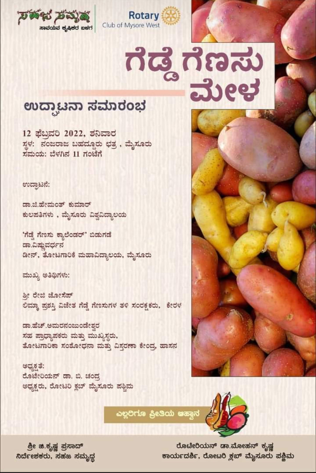 ಕೊಪ್ಪಳ : ಮೈಸೂರಿನಲ್ಲಿ ದಿನಾಂಕ 12-02-2022 ರಂದು ‘ಗೆಡ್ಡೆ ಗೆಣಸು ಮೇಳ’ ಹಮ್ಮಿಕೊಳ್ಳಲಾಗಿದೆ..!