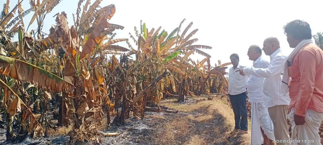 ಭೇಟಿ : ಸುಟ್ಟು ಕರಕಲಾಗಿರುವ ಅತ್ಯಂತ ಸೂಕ್ಷ್ಮ ಬಾಳೆ ಬೆಳೆಯನ್ನು ನೋಡಿದವರ ಜೀವ ಚುರುಕು ಅನ್ನುವಂತಿದೆ. ಸಂಸದ ಸಂಗಣ್ಣ ಕರಡಿ ಸೇರಿದಂತೆ ಮುಖಂಡರಾದ ಈಶಪ್ಪ ಮಾದಿನೂರು, ಗಣೇಶ ಹೊರತಟ್ನಾಳ, ಬಸವರಾಜ ಹಾಗೂ ಇನ್ನಿತರರು ಸ್ಥಳಕ್ಕೆ ಭೇಟಿ ನೀಡಿ, ರೈತನಿಗೆ ಧೈರ್ಯ ತುಂಬಿದರು..!!