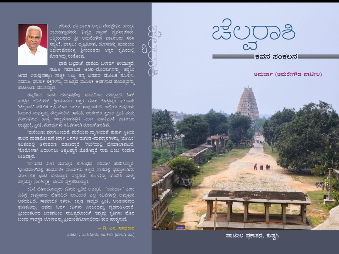ಕೊಪ್ಪಳ (ಕುಷ್ಟಗಿ) : ಕವಿ ಅಮರೇಗೌಡ ಪಾಟೀಲ್ ಜಾಲಿಹಾಳ ಅವರ ಚೊಚ್ಚಲ ಕವನ ಸಂಕಲನ ‘ಚೆಲ್ವರಾಶಿ’ ದಿನಾಂಕ 06-03-2022 ರಂದು ಜಿಲ್ಲೆಯ ಕುಷ್ಟಗಿ ತಾಲೂಕಿನ ಜಾಲಿಹಾಳ ಗ್ರಾಮದಲ್ಲಿ ಲೋಕಾರ್ಪಣೆಗೊಳ್ಳಲಿದೆ..!