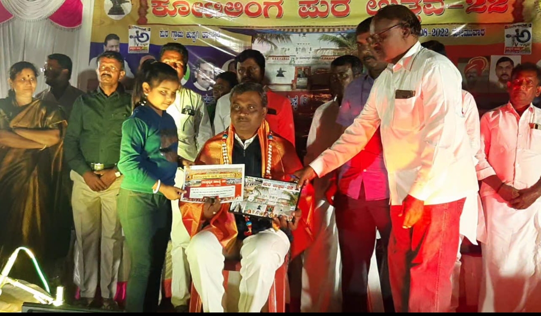 ಕೊಪ್ಪಳ (ಕುಷ್ಟಗಿ) : ಶ್ರಾವಣ ಮಾಸದ ಕಡೆ ಸೋಮವಾರ ನಡೆದ ಜಿಲ್ಲೆಯ ಕುಷ್ಟಗಿ ತಾಲೂಕಿನ ಇತಿಹಾಸ ಪ್ರಸಿದ್ಧ ಕೋಟಿಲಿಂಗ ‘ಪುರ’ ಶ್ರೀ ಸೋಮನಾಥೇಶ್ವರ ಜಾತ್ರಾ ಮಹೋತ್ಸವದಂದು ಪ್ರಥಮ ‘ಪುರ ಉತ್ಸವ-2022’ ದಲ್ಲಿ ಸಾಹಿತಿ ಶಿಕ್ಷಕ ಡಾ.ಕೆ.ಶರಣಪ್ಪ ನಿಡಶೇಸಿ (ಶನಿ)ಅವರಿಗೆ ‘ತಿರುಳ್ಗನ್ನಡ ಸಾಹಿತ್ಯ ಸಿರಿ’ ಪ್ರಶಸ್ತಿ ಪ್ರದಾನ ಮಾಡಲಾಗಿತು..!