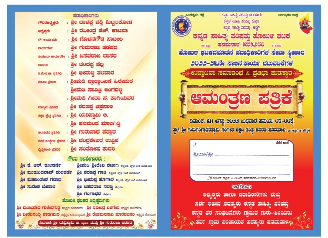 ಕೊಪ್ಪಳ (ಕುಷ್ಟಗಿ) : ಜಿಲ್ಲೆಯ ಕುಷ್ಟಗಿ ತಾಲೂಕಿನ ಹನುಮನಾಳ ಹೋಬಳಿ ಘಟಕದ ಕನ್ನಡ ಸಾಹಿತ್ಯ ಪರಿಷತ್ತಿನ ಪದಾಧಿಕಾರಿಗಳ ಸೇವಾ ಸ್ವೀಕಾರ ಹಾಗೂ 2022-23ನೇ ಸಾಲಿನ ಕಾರ್ಯ ಚಟುವಟಿಕೆಗಳ ಉದ್ಘಾಟನೆ ಹಾಗೂ ಪ್ರತಿಭಾ ಪುರಸ್ಕಾರ ಕಾರ್ಯಕ್ರಮ ದಿನಾಂಕ 31-08-2022 ರಂದು ಬುಧವಾರ ಹಮ್ಮಿಕೊಳ್ಳಲಾಗಿದೆ.!