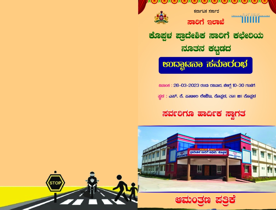 ಕೊಪ್ಪಳ : ನಗರದ ಹೆಚ್.ಕೆ.ಪಾಟೀಲ್ ಲೇಔಟ್ ನಲ್ಲಿ ನೂತನವಾಗಿ ನಿರ್ಮಿಸಿದ ಕೊಪ್ಪಳ ಪ್ರಾದೇಶಿಕ ಸಾರಿಗೆ ಕಚೇರಿಯ ನೂತನ ಕಟ್ಟಡವು ದಿನಾಂಕ 26-03-2023 ರಂದು ರವಿವಾರ ಲೋಕಾರ್ಪಣೆಗೊಳ್ಳಲಿದೆ..!