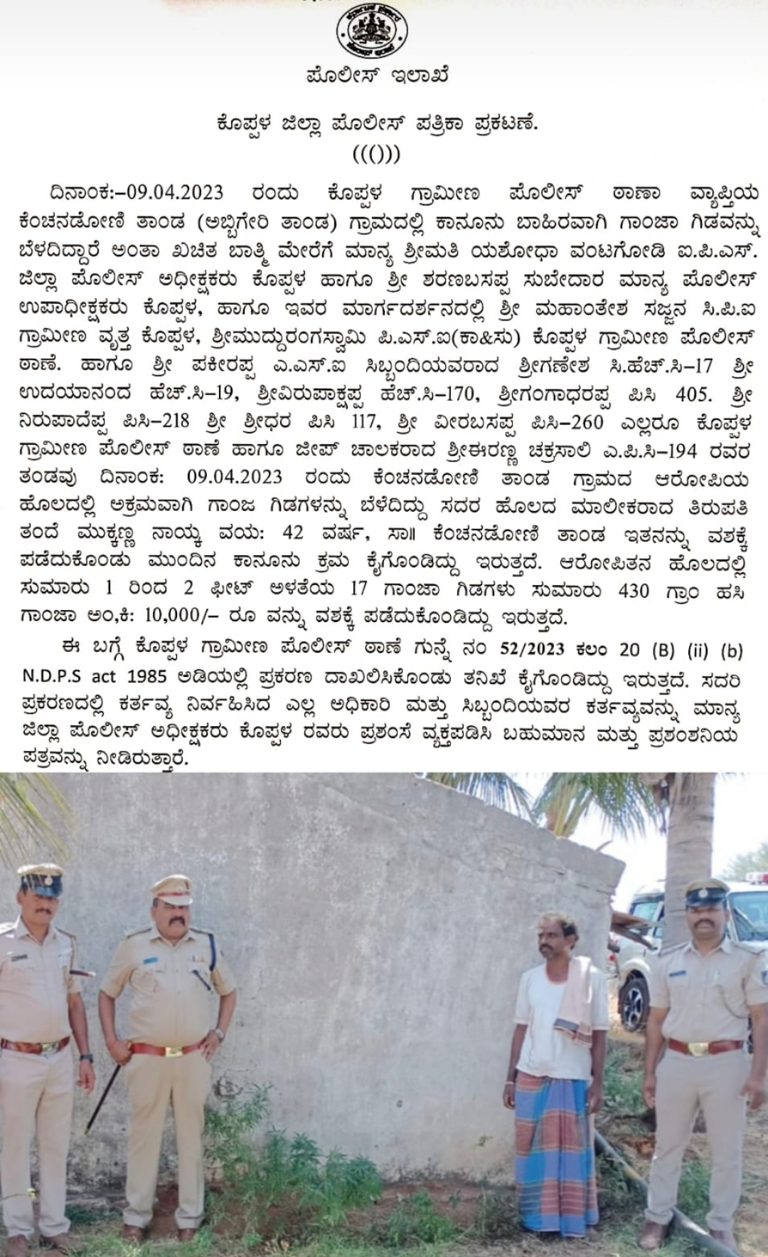 ಗಂಗಾವತಿ ನಗರ ಠಾಣೆಯ 4 ಹಾಗೂ ಯಲಬುರ್ಗಾ ಠಾಣೆಯ ಪ್ರತ್ಯೇಕ 2 ಪ್ರಕರಣಗಳಲ್ಲಿ ಪೊಲೀಸರಿಗೆ ಆರೋಪಿ ಬೇಕಾಗಿದ್ದ ಎಂದು ತಿಳಿದುಬಂದಿದೆ. ಬಂಧಿಸುವಲ್ಲಿ ಯಶಸ್ವಿಯಾದ ಪೊಲೀಸರನ್ನು ಜಿಲ್ಲಾ ಪೊಲೀಸ್ ವರಿಷ್ಠಾಧಿಕಾರಿಗಳು ಅಭಿನಂದಿಸಿದ್ದಾರೆ.