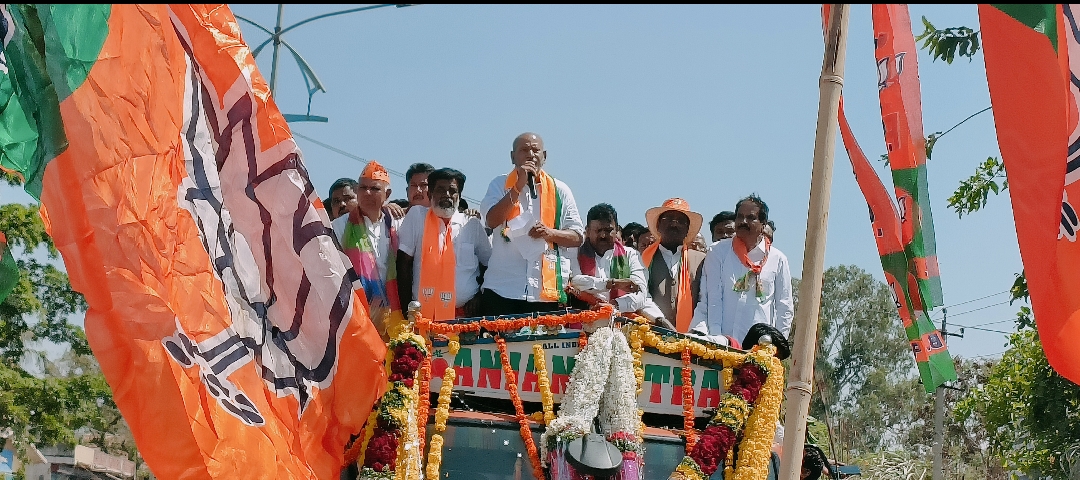 ಅಪಾರ ಕಾರ್ಯಕರ್ತರ ಪಡೆಯೊಂದಿಗೆ ಬಿಜೆಪಿ ಮೆರವಣಿಗೆಯೂ ಬಹಳಷ್ಟು ಅದ್ಧೂರಿಯಾಗಿ ಜರುಗಿತು. ಪಟ್ಟಣದ ಅಡವಿರಾಯ ದೇವಸ್ಥಾನದಿಂದ ಆರಂಭಗೊಂಡ ಮೆರವಣಿಗೆಯ ಸಾಗಿ ಪಟ್ಟಣದ ಪ್ರಮುಖ ಬೀದಿಗಳಲ್ಲಿ ಕಮಲ ಬಾವುಟಗಳ ಕಲರವ ಎದ್ದು ಕಾಣುತ್ತಿತ್ತು. ತೆರೆದ ಲಾರಿಯಲ್ಲಿ ಕಿಕ್ಕಿರಿದು ತುಂಬಿದ ನಾಯಕರನ್ನು ಹೊತ್ತು ತಂದು, ಶ್ರೀ ಬಸವೇಶ್ವರ ವೃತ್ತದಲ್ಲಿ ಕೆಲ ಸಮಯ ಅಭ್ಯರ್ಥಿ ಸೇರಿದಂತೆ ಪ್ರಮುಖ ನಾಯಕರು ಬಿಜೆಪಿ ಗೆಲುವಿಗೆ ಶ್ರಮಿಸುವಂತೆ ಮನವಿ ಮಾಡಿಕೊಂಡರು. ಮೆರವಣಿಗೆ ಬಸವೇಶ್ವರ ವೃತ್ತಕ್ಕೆ ಆಗಮಿಸುತ್ತಿದ್ದಂತೆ ಕೊಪ್ಪಳ ಲೋಕಸಭಾ ಕ್ಷೇತ್ರದ ಸಂಸದ ಸಂಗಣ್ಣ ಕರಡಿ ಭಾಗವಹಿಸಿ, ಈ ಬಾರಿ ಜಿಲ್ಲೆಯಲ್ಲಿ ಬಿಜೆಪಿ ಅಭ್ಯರ್ಥಿಗಳ ಗೆಲವು ಆಗಬೇಕು. ತಳಮಟ್ಟದಿಂದ ಭಾರತೀಯ ಜನತಾ ಪಕ್ಷದ ಸರಕಾರಗಳ ಅಭಿವೃದ್ಧಿ ಕಾರ್ಯಗಳನ್ನು ಜನರಿಗೆ ಮನವರಿಕೆ ಮಾಡುವ ಮೂಲಕ ಬೆಂಬಲಿಸುವಂತೆ ಕಾರ್ಯಕರ್ತರಿಗೆ ಮನವಿ ಮಾಡಿಕೊಂಡರು. ಈ ಬಾರಿ ಸ್ಥಳೀಯರಿಗೆ ಅವಕಾಶ ನೀಡಬೇಕು. ಹೊರಗಿನವರಿಗೆ ಮತ ನೀಡಬಾರದು ಎಂದು ಕಟ್ಟಪ್ಪಣೆ ಮಾಡಿದ ಪ್ರಸಂಗ ಜರುಗಿತು..!!
