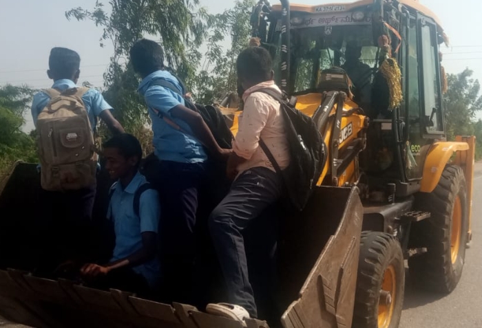 ವಾಹನಗಳ ವ್ಯವಸ್ಥೆ ಇಲ್ಲದಿರುವುದರಿಂದ ಶಾಖಾಪೂರು ಗ್ರಾಮದ ಸುಮಾರು ಇಪ್ಪತ್ತಕ್ಕೂ ಹೆಚ್ಚು ವಿದ್ಯಾರ್ಥಿಗಳು ಸುಮಾರು ಮೂರ್ನಾಲ್ಕು ಕಿಲೋಮೀಟರ್ ದೂರದಲ್ಲಿರುವ ಯಲಬುರ್ಗಾ ತಾಲೂಕಿನ ಹಿರೇಅರಳಿಹಳ್ಳಿ ಗ್ರಾಮದ ಸರ್ಕಾರಿ ಪ್ರೌಢ ಶಾಲೆಗೆ ನಡೆದುಕೊಂಡೇ ನಿತ್ಯ ತೆರಳಬೇಕು. ಒಮ್ಮೊಮ್ಮೆ ಜಮೀನುಗಳಿಗೆ ಅಥವಾ ಇತರೆ ಕಾರ್ಯಗಳಿಗೆ ತೆರಳುವ ಟ್ರ್ಯಾಕ್ಟರ್ ಹಾಗೂ ಜೆಸಿಬಿ ಯಂತ್ರಗಳ ಆಸರೆ ಪಡೆಯುವುದು ಸಾಮಾನ್ಯ ಎಂದು ತಿಳಿದುಬಂದಿದೆ. ಇಂದು ಬೆಳಿಗ್ಗೆ ಜೆಸಿಬಿ ವಾಹನದ ಬಕೀಟನಲ್ಲಿ ಹಾಗೂ ಕ್ಯಾಬೀನಲ್ಲಿ ವಿದ್ಯಾರ್ಥಿಗಳು ಶಾಲೆಗೆ ತೆರಳುತ್ತಿರುವುದು ಮನಕಲುಕುವಂತಿರುತ್ತದೆ. ಇಂತಹ ದೃಶ್ಯ ಕಂಡ ಪ್ರಜ್ಞಾವಂತ ನಾಗರಿಕರು ವಿದ್ಯಾರ್ಥಿಗಳ ಪ್ರಯಾಣಕ್ಕೆ ಬಸ್ ಸೌಲಭ್ಯ ಕಲ್ಪಿಸಬೇಕು ಎಂದು ಒತ್ತಾಯಿಸುತ್ತಿದ್ದಾರೆ..!!