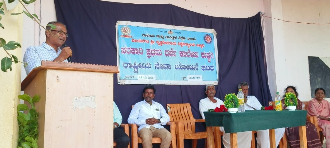 ಜಿಲ್ಲೆಯ ಕುಷ್ಟಗಿ ತಾಲೂಕಿನ ಬಿಜಕಲ್ ಗ್ರಾಮ ಪಂಚಾಯಿತಿ ವ್ಯಾಪ್ತಿಯ ಮಾನಕಲಕೇರಿ ಗ್ರಾಮದಲ್ಲಿ ಕುಷ್ಟಗಿ ಸರಕಾರಿ ಪದವಿ ಕಾಲೇಜಿನಿಂದ ದಿನಾಂಕ 28-08-2023 ಸೋಮವಾರ ಹಮ್ಮಿಕೊಂಡಿದ್ದ ಎನ್ಎಸ್ಎಸ್ ಶಿಬಿರದಲ್ಲಿ ಧ್ವಜಾರೋಹಣ ನೆರೆವೇರಿಸಿ ಮಾತನಾಡಿ, ಪ್ರಸ್ತುತ ಸಂದರ್ಭಗಳಲ್ಲಿ ವಿದ್ಯಾರ್ಥಿಗಳಿಗೆ ಸಾಮಾಜಿಕ ಕಳಕಳಿ, ಸೌಹಾರ್ದತೆ, ಪರಸ್ಪರ ಅರ್ಥೈಸಿಕೊಳ್ಳುವುದು, ಗೌರವಿಸುವುದು ಮುಂತಾದ ಮೌಲ್ಯಗಳನ್ನು ತಿಳಿಸಿಕೊಡುವ ಅಗತ್ಯವಿದೆ. ಹೀಗಾಗಿ ಪ್ರತಿಯೊಬ್ಬ ಶಿಬಿರಾರ್ಥಿ, ಶಿಬಿರದ ಸಂಪೂರ್ಣ ಸದುಪಯೋಗ ಪಡೆದುಕೊಂಡು ಉತ್ತಮ ವ್ಯಕ್ತಿತ್ವ ರೂಪಿಸಿಕೊಳ್ಳಬೇಕು ಎಂದು ಸಲಹೆ ನೀಡಿದರು.
