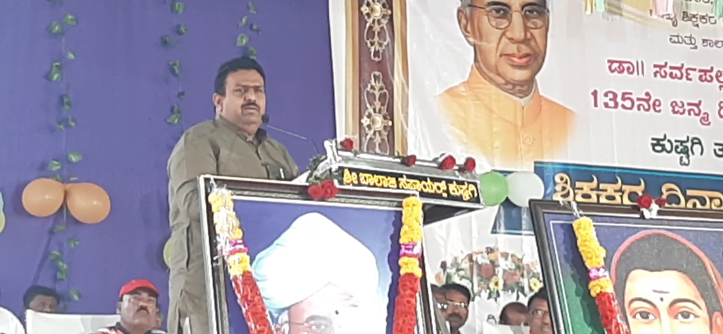 ಅವರು, ಜಿಲ್ಲೆಯ ಕುಷ್ಟಗಿ ಪಟ್ಟಣದ ಕ್ರೈಸ್ತ ದ ಕಿಂಗ್ ಪ್ರೌಢ ಶಾಲೆಯಲ್ಲಿ ಡಾ. ಸರ್ವಪಲ್ಲಿ ರಾಧಾಕೃಷ್ಣನ್ ರವರ 135ನೇ ಜನ್ಮ ದಿನಾಚರಣೆಯ ಪ್ರಯುಕ್ತ ಮಂಗಳವಾರ ಆಯೋಜಿಸಿದ್ದ ತಾಲೂಕು ಮಟ್ಟದ ಶಿಕ್ಷಕರ ದಿನಾಚರಣೆ ಕಾರ್ಯಕ್ರಮ ಉದ್ಘಾಟಿಸಿ ಮಾತನಾಡಿ, ಇಂದಿನ ಸಮಾಜದಲ್ಲಿ ಯುವಜನತೆ ಹಾದಿ ತಪ್ಪುತ್ತಿದ್ದು, ದೇಶದಲ್ಲಿ ಅಹಿತಕರ ಘಟನೆಗಳು ಹೆಚ್ಚಾಗಲು ಕಾರಣವಾಗಿದೆ. ಮಕ್ಕಳ ಭವಿಷ್ಯ ರೂಪಿಸುವ ಶಿಕ್ಷಕರು ತಮ್ಮ ವೃತ್ತಿಯನ್ನು ಇನ್ನಷ್ಟು ಪ್ರಾಮಾಣಿಕವಾಗಿ ಕಾರ್ಯನಿರ್ವಹಿಸಬೇಕು ಎಂದು ಕರೆ ನೀಡಿದರು.