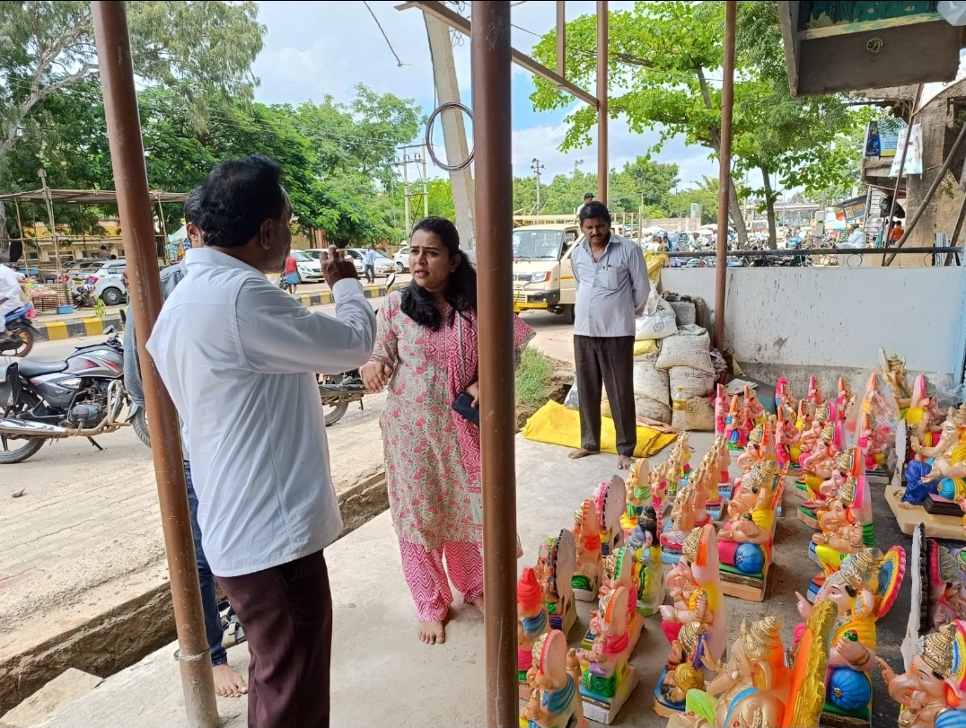 ಕೊಪ್ಪಳ : ನಿಷೇಧಿತ ಪ್ಲಾಸ್ಟರ್ ಆಫ್ ಪ್ಯಾರಿಸ್’ನಿಂದ ತಯಾರಿಸಿದ ಗಣೇಶ್ ಮೂರ್ತಿಗಳನ್ನು ಮಾರಾಟ ಮಾಡಿದರೆ ಕಾನೂನುರೀತ್ಯ ಕ್ರಮ ಕೈಗೊಳ್ಳುವುದಾಗಿ ತಹಸೀಲ್ದಾರ್ ಶೃತಿ ಮಳ್ಳಪ್ಪಗೌಡರ್ ಅವರು ಮೂರ್ತಿ ಮಾರಾಟಗಾರರಿಗೆ ಖಡಕ್ಕಾಗಿ ಎಚ್ಚರಿಕೆ ನೀಡಿದ ಪ್ರಸಂಗ ಭಾನುವಾರ ನಡೆಯಿತು.