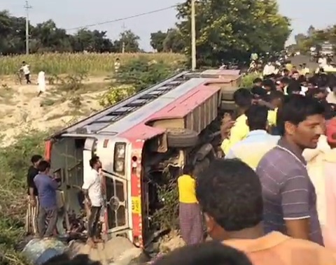 ತಾಲೂಕಿನ ದೋಟಿಹಾಳ ವ ದಕ್ಷಿಣ ಕನ್ನಡ ಮಂಗಳೂರು ಮಾರ್ಗದ ಬಸ್ ಇದಾಗಿದೆ. ಕುಷ್ಟಗಿ ಪೊಲೀಸ್ ಠಾಣಾ ವ್ಯಾಪ್ತಿಯಲ್ಲಿ ಈ ದುರ್ಘಟನೆ ಸಂಭವಿಸಿದೆ. ದೋಟಿಹಾಳ ದಿಂದ ಮೆಣಸಗೇರಿ, ಮಿಯ್ಯಾಪೂರ ಮೂಲಕ ಹನುಮಸಾಗರ ಕಡೆ ಹೊರಟಿದ್ದ ಬಸ್ ಮಿಯ್ಯಾಪೂರ ಹಳ್ಳದ ಬಳಿ ಚಾಲಕನ ನಿಯಂತ್ರಣ ತಪ್ಪಿ ರಸ್ತೆಬದಿ ವಾಲಿ ಬಿದ್ದಿದೆ ಎಂದು ಹೇಳಲಾಗುತಿದ್ದು, ಚಾಲಕ ಹಾಗೂ ನಿರ್ವಾಹಕ ಸೇರಿದಂತೆ ಬಸ್ಸಿನಲ್ಲಿ ಪ್ರಯಾಣಿಸುತಿದ್ದ ಸುಮಾರು 35 ಜನ ಪ್ರಯಾಣಿಕರಲ್ಲಿ ಹಲವರಿಗೆ ಗಾಯಗಳಾಗಿವೆ. ಘಟನಾ ಸ್ಥಳಕ್ಕೆ ಕುಷ್ಟಗಿ ಹಾಗೂ ಹನುಮಸಾಗರ ಪೊಲೀಸ್ ಠಾಣಾ ಅಧಿಕಾರಿಗಳು ಭೇಟಿನೀಡಿ ಪರಿಶೀಲನೆ ನಡೆಸಿದ್ದು, ಸಧ್ಯ ಯಾರಿಗೂ ಜೀವಹಾನಿ ಸಂಭವಿಸಿಲ್ಲ ಎಂದು ತಿಳಿದುಬಂದಿದೆ.