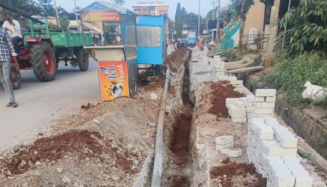 ಭಾನುವಾರ ದಿನ ಕಾಮಗಾರಿ ಕೈಗೊಂಡ ಗುತ್ತಿಗೆದಾರರು ಮಾರುತಿ ವೃತ್ತದಿಂದ ಟಿಎಪಿಸಿಎಂಎಸ್ ಸೊಸೈಟಿ ಮುಂಭಾಗದ ವರೆಗೆ ಮಾತ್ರ ತೆಗ್ಗು ಅಗೆದು ವೈಜ್ಞಾನಿಕವಾಗಿ ಪೈಪ್ಲೈನ್ ಕಾಮಗಾರಿ ಪೂರ್ಣಗೊಳಿಸಿದ್ದಾರೆ.