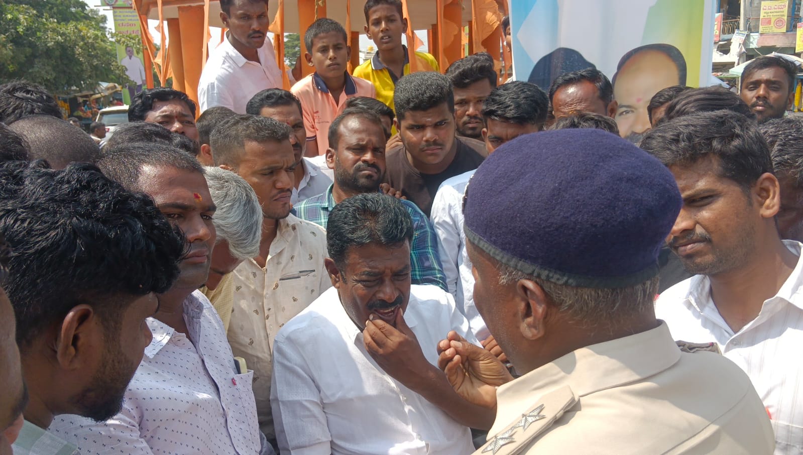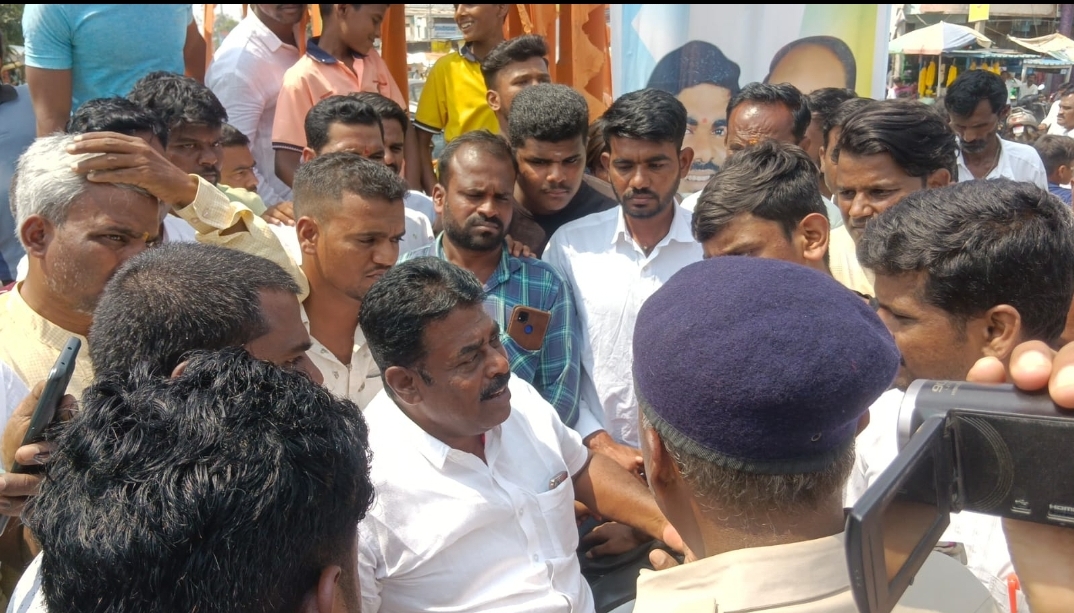 ಪಟ್ಟಣದ ಜಂಗಮ ಸಮುದಾಯದ ಪ್ರಮುಖ ರವಿಕುಮಾರ ಹಿರೇಮಠ ಎಂಬುವರ ಪುತ್ರ ನಂದೀಶ ಎಂಬ ಯುವಕನ ಮೇಲೆ ಸ್ಥಳೀಯ ಪಿಎಸ್ಐ ಮುದ್ದುರಂಗಸ್ವಾಮಿ ಅವರು ಹಲ್ಲೆ ಮಾಡಿದ್ದಾರೆ ಎಂದು ಘಟನೆ ಖಂಡಿಸಿ ಬಸವೇಶ್ವರ ವೃತ್ತದಲ್ಲಿ ಸುಮಾರು ಇನ್ನೂರಕ್ಕೂ ಅಧಿಕ ಜನ ಸಮಾವೇಶಗೊಂಡು ರವಿಕುಮಾರ ಹಿರೇಮಠ ಅವರ ನೇತೃತ್ವದಲ್ಲಿ ದಿಢೀರನೇ ಪ್ರತಿಭಟನೆ ನಡೆಸಿ ಪೊಲೀಸ್ ಸಬ್ ಇನ್ಸ್ಪೆಕ್ಟರ್ ಮುದ್ದುರಂಗಸ್ವಾಮಿ ಅವರನ್ನು ಅಮಾನತ್ತು ಮಾಡಬೇಕು ಎಂದು ಆಕ್ರೋಶ ವ್ಯಕ್ತಪಡಿಸಿದರು.
