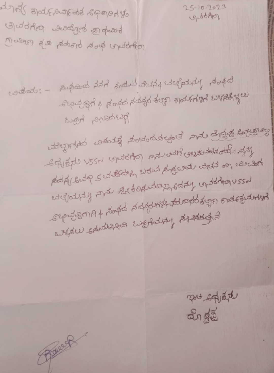 ತಮ್ಮ 5 ವರ್ಷದ ಆಡಳಿತಾವಧಿಯಲ್ಲಿ ಸಿಗುವ ಸೊಸಾಯಿಟಿಯ ವೇತನ ಹಾಗೂ ಪ್ರತಿ ತಿಂಗಳ ಸಭೆಯ ಬತ್ಯೆಯನ್ನು ಸಂಘದ ಅಭಿವೃದ್ಧಿ ಕಾರ್ಯಕ್ಕೆ ಮತ್ತು ಸಂಘದ ಸದಸ್ಯರುಗಳು ಹಾಗೂ ಶೇರುದಾರರ ಕಲ್ಯಾಣ ಕಾರ್ಯಕ್ರಮಗಳಿಗೆ ಬಳಸಿಕೊಳ್ಳಲು ಅನುಮತಿಸಿ ಮನಃಪೂರ್ವಕವಾಗಿ ಒಪ್ಪಿಗೆ ಪತ್ರವನ್ನು ಬರೆದು ಕಾರ್ಯನಿರ್ವಾಹಕ ಅಧಿಕಾರಿಗೆ ಅಕ್ಟೋಬರ್ 25 ರಂದು ಸಲ್ಲಿಸಿರುವುದು ಗಮನ ಸೆಳೆದಿದೆ. ಕುಷ್ಟಗಿ ತಾಲೂಕು ಮುಂಗಾರು, ಹಿಂಗಾರು ಮಳೆ ಕೈಕೊಟ್ಟು ತೀವ್ರ ಬರಗಾಲ ಅನುಭವಿಸುತ್ತಿರುವ ಸಮಯದಲ್ಲಿ ಸಂಘದ ಅಧ್ಯಕ್ಷರು ಈ ನಿರ್ಧಾರಕ್ಕೆ ಬಂದಿರುವುದು ಕೊಪ್ಪಳ ಜಿಲ್ಲೆಯ ಎಲ್ಲಾ ಸೊಸೈಟಿಗಳ ಅಧ್ಯಕ್ಷರು ಹಾಗೂ ನಿರ್ದೇಶಕರುಗಳಿಗೆ ಮಾದರಿಯಾಗಿದ್ದು, ಅಧ್ಯಕ್ಷರ ಈ ನಿರ್ಧಾರಕ್ಕೆ ಶೇರುದಾರರಿಂದ ಮೆಚ್ಚುಗೆ ವ್ಯಕ್ತವಾಗಿದೆ.