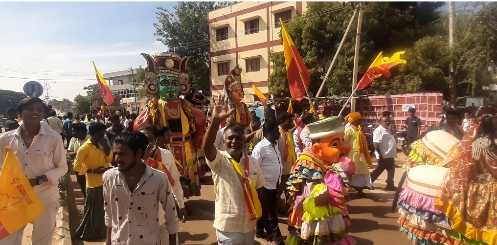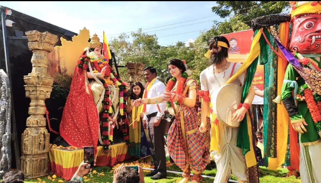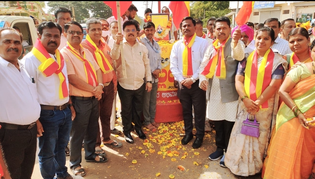 ಪಟ್ಟಣದ ಗಾರ್ಗಿಲ್ ಹುತಾತ್ಮ ವೀರಯೋಧ ಮಲ್ಲಯ್ಯ ವೃತ್ತದಲ್ಲಿ ಪುರಸಭೆ ಮುಖ್ಯಾಧಿಕಾರಿ ಧರಣೇಂದ್ರಕುಮಾರ ಅವರು ತಾಯಿ ಭುವನೇಶ್ವರಿ ಭಾವಚಿತ್ರಕ್ಕೆ ಪೂಜೆ ನೆರವೇರಿಸಿ ಗೌರವಿಸಿದರು. ಬಳಿಕ ನಾಡದೇವತೆ ಭುವನೇಶ್ವರಿ ಮೂರ್ತಿ ಸೇರಿದಂತೆ ನಾಡಿನ ಸಂಸ್ಕೃತಿ ಬಿಂಬಿಸುವ ಸ್ತಬ್ಧ ಗೊಂಬೆಗಳು ಹಾಗೂ ವಿಜಯನಗರ ಹಂಪೆಯ ಕಲ್ಲಿನ ರಥದ ಮಾದರಿ ಇರಿಸಿದ ಜ್ಯೋತಿ ರಥಯಾತ್ರೆಗೆ ತಾಲೂಕು ಮಟ್ಟದ ವಿವಿಧ ಇಲಾಖೆ ಅಧಿಕಾರಿಗಳು ಪುಷ್ಪ ಸಮರ್ಪಿಸಿದರು. ನಂತರ ಕನ್ನಡ ಭಾವುಟ ಪ್ರದರ್ಶಿಸಿ ಯಾತ್ರೆಗೆ ಚಾಲನೆ ನೀಡಿದರು.