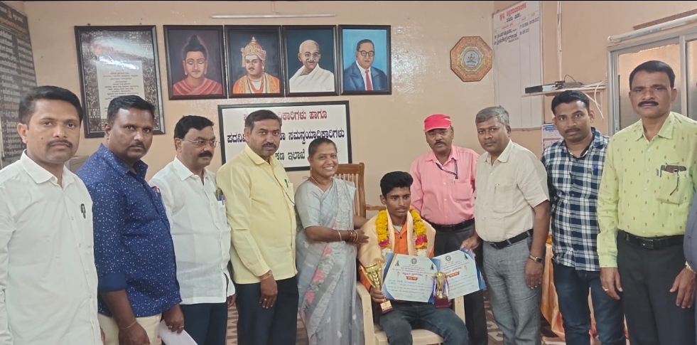 ಕೊಪ್ಪಳ : 17ರ ವಯೋಮಿತಿ ಒಳಗಿನ ವಿಶೇಷ ಚೇತನರ ರಾಜ್ಯಮಟ್ಟದ ಕ್ರೀಡಾಕೂಟದಲ್ಲಿ ಪ್ರಥಮ ಸ್ಥಾನ ಪಡೆದ ಜಿಲ್ಲೆಯ ಕುಷ್ಟಗಿ ತಾಲೂಕಿನ ತುಗ್ಗಲಡೋಣಿ ಗ್ರಾಮದ ವಿಶೇಷ ಚೇತನ ಕಾಳಿಂಗಪ್ಪ ಹನುಮಪ್ಪ ಇಟಗಿ ಅವರನ್ನು ಶಿಕ್ಷಣ ಇಲಾಖೆಯಿಂದ ಜ.19 ಶುಕ್ರವಾರ ಗೌರವಿಸಲಾಯಿತು.