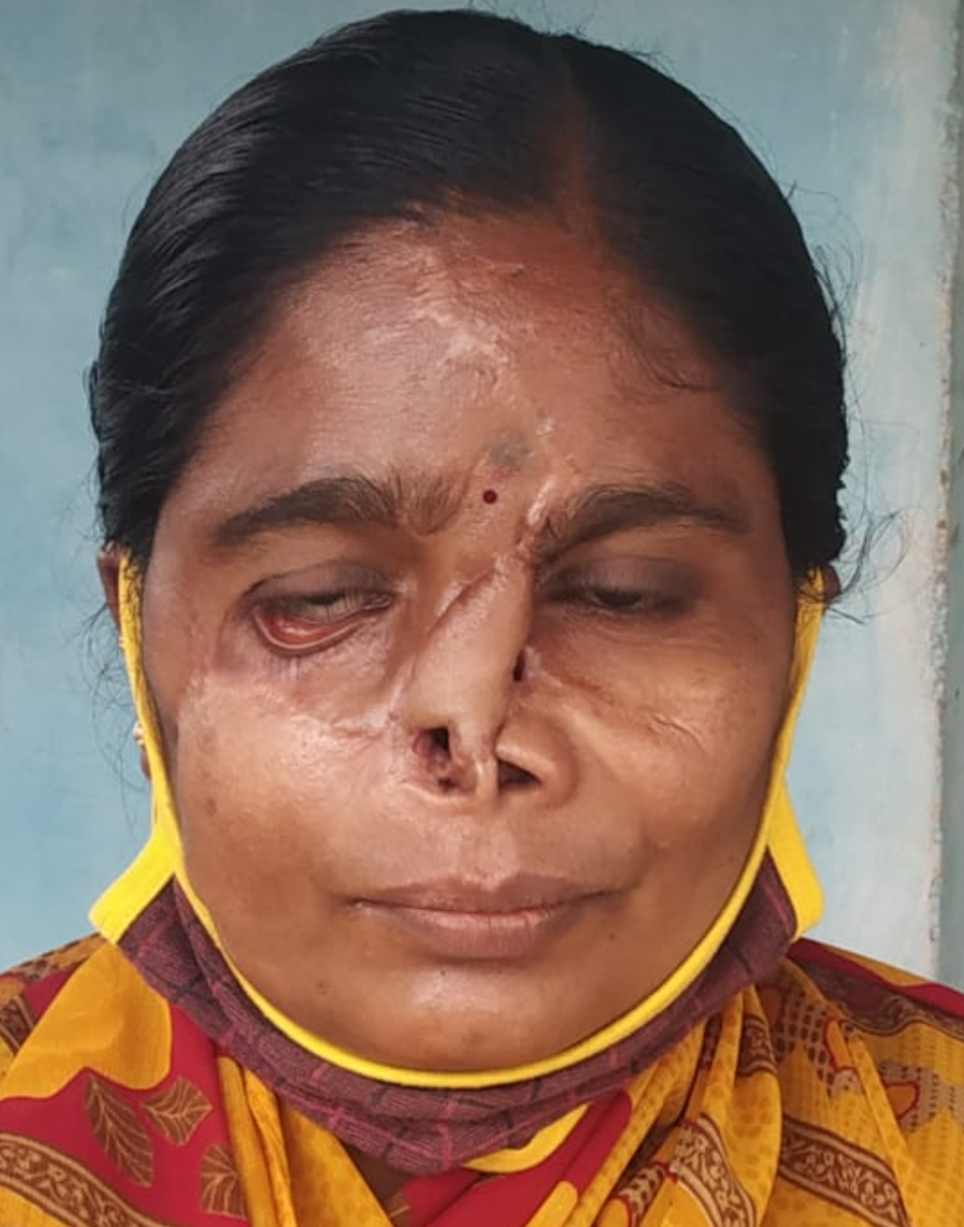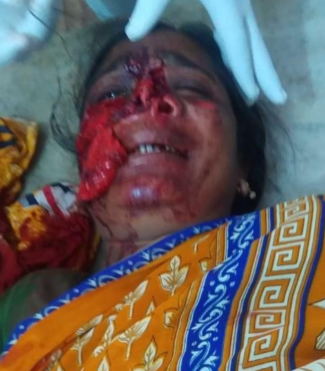 (ತೋಳ ದಾಳಿಗೊಳಗಾಗಿ ಚಿಕಿತ್ಸೆ ಪಡೆಯುತ್ತಿರುವಾಗಿನ ನಾಗಮ್ಮನ ಮುಖ)
