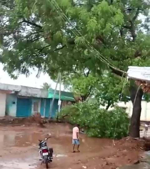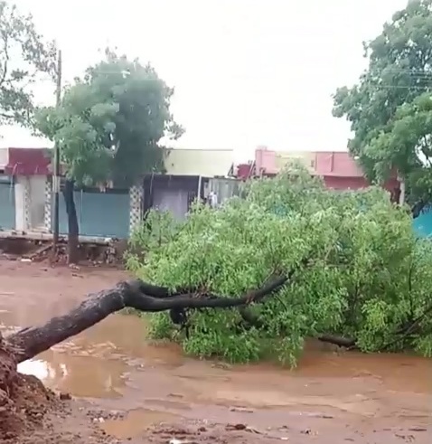 ಪಟ್ಟಣದ ಕೃಷಿ ಉತ್ಪನ್ನ ಮಾರುಕಟ್ಟೆ ಸಮಿತಿ ಎರಡನೇ ಗೇಟ್ ಬಳಿ ಈ ಘಟನೆ ಸಂಭವಿಸಿದೆ. ಬೃಹದಾಕಾರದ ಮೂರು ಬೇವಿನ ಮರಗಳು ಹಾಗೂ ಒಂದು ಬೀದಿ ಬದಿಯ ವಿದ್ಯುತ್ ಕಂಬ ಧರೆಗುರುಳಿದೆ. ಒಂದು ಮರ ಚಂದ್ರಮೌಳೇಶ್ವರ ದಲಾಲಿ ಮಳಿಗೆ ಮೆಲೆ ಬಿದ್ದಿದ್ದು, ಸ್ವಲ್ಪ ಪ್ರಮಾಣದ ಧಕ್ಕೆಯಾಗಿದೆ. ಎರಡು ಮರಗಳು ರಸ್ತೆಗೆ ಉರುಳಿದರೆ ಒಂದು ವಿದ್ಯುತ್ ಕಂಬ ಅಭಿನವ ಗವಿಸಿದ್ದೇಶ್ವರ ದಲಾಲಿ ಅಂಗಡಿಗೆ ತಾಗಿಕೊಂಡು ಬಿದ್ದಿದೆ. ಅದೃಷ್ಟವಶಾತ್ ಯಾರಿಗೂ ಕೂಡ ಜೀವಹಾನಿ ಸಂಭವಿಸಿಲ್ಲ ಎಂದು ವರ್ತಕರು ಹಾಗೂ ಗಂಜ್ ಹಮಾಲರು ಮಾಹಿತಿ ನೀಡಿದ್ದು, ಗಂಜಿನಲ್ಲಿ ಕೈಗೊಂಡಿರುವ ಅವೈಜ್ಞಾನಿಕ ಸಿಸಿ ರಸ್ತೆ ಕಾಮಗಾರಿ ಕಾರಣದಿಂದ ಈ ಅವಘಡ ಸಂಭವಿಸಿದೆ ಎಂದು ದೂರಿದ್ದಾರೆ.