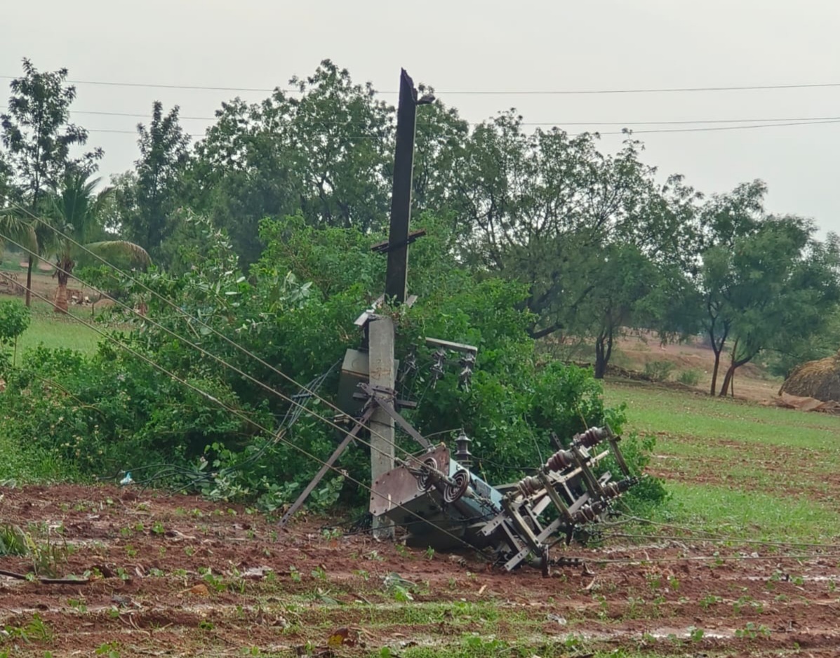 ತಾಲೂಕಿನ ಮದಲಗಟ್ಟಿ ಗ್ರಾಮದ ಜಮೀನೊಂದರಲ್ಲಿ ವಿದ್ಯುತ್ ಪರಿವರ್ತಕ ಸಮೇತ ವಿದ್ಯುತ್ ಕಂಬ ಮುರಿದು ಬಿದ್ದಿದೆ. ಹಾಬಲಕಟ್ಟಿ ಗ್ರಾಮದ ಸರಕಾರಿ ಹಿರಿಯ ಪ್ರಾಥಮಿಕ ಶಾಲೆ ಬಳಿಯ ರಸ್ತೆ ಬದಿಯ ವಿದ್ಯುತ್ ಕಂಬ ಮುರಿದು ಬಿದ್ದಿದೆ.