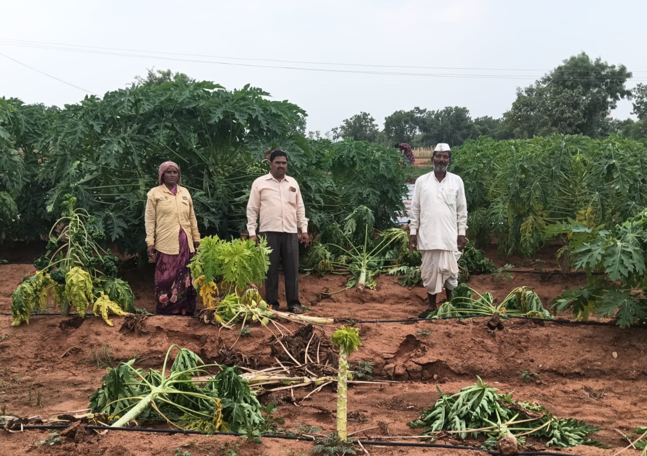 ತುಗ್ಗಲಡೋಣಿ ಗ್ರಾಮದ ಶಿವಪುತ್ರಪ್ಪ ಕುಣಿಮಿಂಚಿ ಎಂಬುವರಿಗೆ ಸೇರಿದ ಒಂದುವರೆ ಎಕರೆ ಜಮೀನಿನಲ್ಲಿ ಬೆಳೆಯಲಾಗಿದ್ದ ಕಟಾವಿನ ಹಂತದ ಪಪ್ಪಾಯಿ ಬೆಳೆ ಹಾಗೂ ಮಡಿಕೇರಿ ಸೀಮಾದಲ್ಲಿ ಎಲೆ ತೋಟ, ನುಗ್ಗೆ ಗಿಡಗಳು ಸಂಪೂರ್ಣವಾಗಿ ನೆಲಕಚ್ಚಿದ್ದು, ರೈತರಿಗೆ ನುಂಗಲಾರದ ತುತ್ತಾಗಿದೆ. ಅದೇರೀತಿ ಸುತ್ತಮುತ್ತಲಿನ ಅನೇಕ ತೋಟಗಾರಿಕೆ ಮತ್ತು ಹೊರ ಬೆಳೆಗಳು ಅಕಾಲಿಕ ಮಳೆ ಬಿರುಗಾಳಿಗೆ ಹಾನಿಗೊಳಗಾಗಿವೆ.
