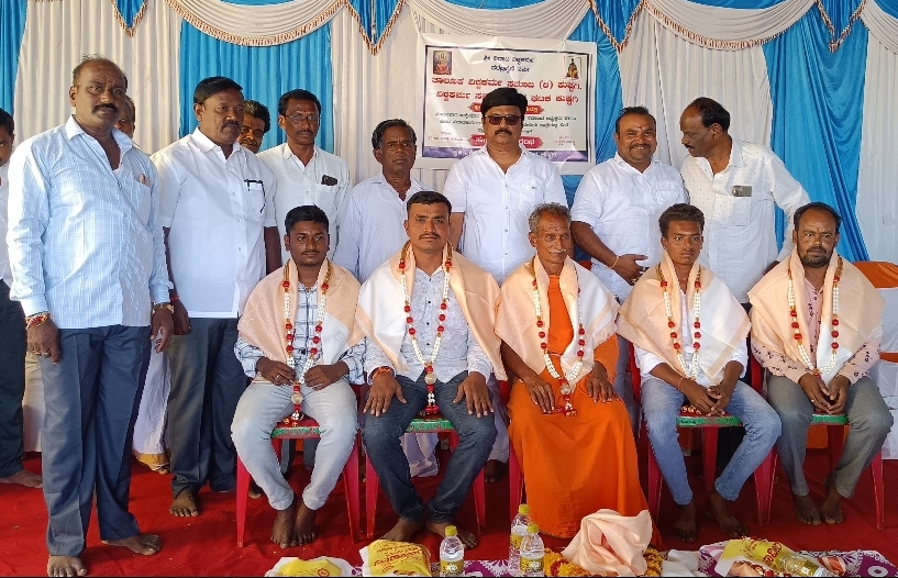 ಕುಷ್ಟಗಿ : ಕಳೆದ 65 ವರ್ಷಗಳ ಹಿಂದೆ ಕಾರಣಾಂತರಗಳಿಂದ ಸ್ಥಗಿತಗೊಂಡಿದ್ದ ಪಟ್ಟಣದ ಗ್ರಾಮದೇವತೆ ಶ್ರೀ ದ್ಯಾಮವ್ವದೇವಿ ಜಾತ್ರಾ ಮಹೋತ್ಸವವನ್ನು ಇತ್ತೀಚೆಗೆ ಸರ್ವ ಸಮುದಾಯದವರೊಂದಿಗೆ ಭಾಗವಹಿಸಿ ಧಾರ್ಮಿಕ ವಿಧಿವಿಧಾನಗಳೊಂದಿಗೆ ಸೇವೆ ಸಲ್ಲಿಸಿ ಅಚ್ಚುಕಟ್ಟಾಗಿ ನಡೆಸಿಕೊಟ್ಟ ವಿಶ್ವಕರ್ಮ ಸಮುದಾಯದ ಹಿರಿಯರು ಮತ್ತು ಯುವಕರನ್ನು ಗುರುವಾರ ಸನ್ಮಾನಿಸಿ ಅಭಿನಂದಿಸಲಾಯಿತು.