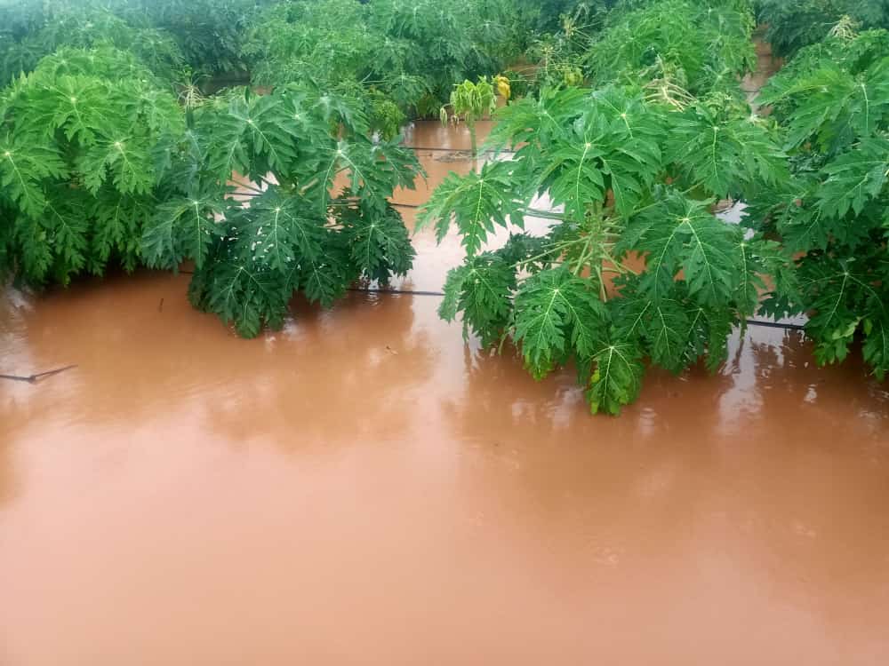 ಕೊಪ್ಪಳ : ಮೃಗಶಿರೆಯಲ್ಲಿ ಮಿಸುಗಾಡದೆ ನೆರೆಬಂತು ಎಂಬ ನಾಡ್ನುಡಿ ಸುಳ್ಳಲ್ಲ. ಜಿಲ್ಲೆಯ ಕುಷ್ಟಗಿ ತಾಲೂಕಿನ ತೋಪ್ಪಲಕಟ್ಟಿ ಗ್ರಾಮದ ಜಮೀನಿನಲ್ಲಿ ಬೆಳೆಯಲಾಗಿದ್ದ ಪಪ್ಪಾಯಿ ಹಾಗೂ ಇಸ್ಮೆಕ್ಕಿ ಬೆಳೆ ಗುರುವಾರ ಸಂಜೆ ಸುರಿದ ಅಬ್ಬರದ ಮೃಗಶಿರ ಮಳೆಗೆ ಸಂಪೂರ್ಣ ಜಲಾವೃತಗೊಂಡು ಹಾನಿ ಸಂಭವಿಸಿದೆ.