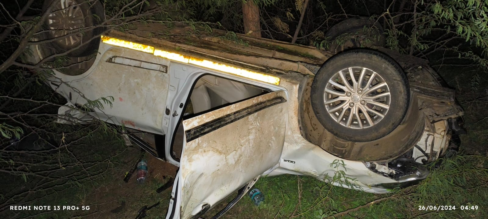 ಕುಷ್ಟಗಿ-ಇಳಕಲ್ ರಾಷ್ಟ್ರೀಯ ಚತುಷ್ಪಥ ಹೆದ್ದಾರಿ ಜಿಯೋ ಪೆಟ್ರೋಲ್ ಬಂಕ್ ಬಳಿ ಈ ದುರ್ಘಟನೆ ಸಂಭವಿಸಿದೆ. ಇಂಡಿ ತಾಲೂಕಿನ ದರ್ಶನ್ ತಂದೆ ಸತೀಶಕುಮಾರ ಪಾಂಡ್ರೆ (19) ಸಾವಿಗೀಡಾದ ಕಾರು ಚಲಾಯಿಸುತಿದ್ದ ಯುವಕ. ಧಾರವಾಡದಲ್ಲಿ ವಿದ್ಯಾಭ್ಯಾಸ ಮಾಡುತ್ತಿದ್ದ ವಿಜಯಪುರ ಜಿಲ್ಲೆಯ ನಾಲ್ವರು ಯುವಕರು, ಮೃತ ಯುವಕನ ಸಂಬಂಧಿಕರ ಕಾರು ತೆಗೆದುಕೊಂಡು ಪ್ರವಾಸಕ್ಕೆ ತೆರಳಿದ್ದರು. ಪ್ರವಾಸ ಮುಗಿಸಿಕೊಂಡು ಮರಳಿ ವಿಜಯಪುರಕ್ಕೆ ತೆರಳುತಿದ್ದ ಸಂದರ್ಭದಲ್ಲಿ ಅತಿವೇಗವಾಗಿದ್ದ ಕಾರು ಚಾಲಕನ ನಿಯಂತ್ರಣಕ್ಕೆ ಸಿಗದೆ ಡಿವೈಡರ್’ಗೆ ಡಿಕ್ಕಿ ಹೊಡಿದು ರಸ್ತೆ ಪಕ್ಕಕ್ಕೆ ಪಲ್ಟಿಯಾಗಿದೆ ಎಂದು ದೂರಿನಲ್ಲಿ ತಿಳಿಸಲಾಗಿದೆ. ಅಭಿಷೇಕ ದಳವಾಯಿ (18), ವೀರೇಶ ಮಂದೇಲಿ (19), ಆದಿತ್ಯ ಬನಸೋಡೆ (18) ಎಂಬ ಮೂವರು ಗಾಯಗೊಂಡಿದ್ದಾರೆ. ಈ ಕುರಿತು ಕುಷ್ಟಗಿ ಪೊಲೀಸ್ ಠಾಣೆಯಲ್ಲಿ ಪ್ರಕರಣ ದಾಖಲಾಗಿದೆ.