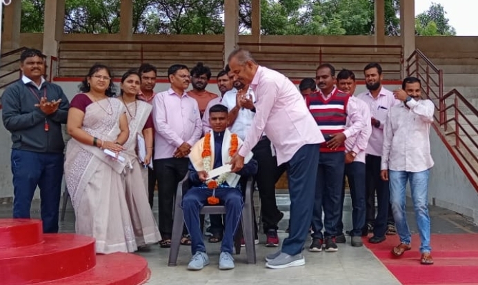 ಪಟ್ಟಣದ ಸರ್ಕಾರಿ ಪ್ರಥಮ ದರ್ಜೆ ಕಾಲೇಜಿನಲ್ಲಿ ಬಿಎ ಅಂತಿಮ ವರ್ಷದಲ್ಲಿ ವ್ಯಾಸಂಗ ಮಾಡುತ್ತಿರುವ ಮಂಜುನಾಥ ಚೌಡಕಿಯ ಪ್ರತಿಭೆಯನ್ನು ಮೆಚ್ಚಿ ಇಲ್ಲಿಯ ತಾಲೂಕು ಕ್ರೀಡಾಂಗಣದಲ್ಲಿ ಕಾಲೇಜು ಪ್ರಾಚಾರ್ಯ ಡಾ.ಎಸ್.ವಿ. ಡಾಣಿ ಅವರು ಹಾಗೂ ಉಪನ್ಯಾಸಕ ವೃಂದ ಶಾಲು ಹೊದಿಸಿ ಹೂಮಾಲೆ ಹಾಕಿ ಗೌರವಿಸಿದರು.