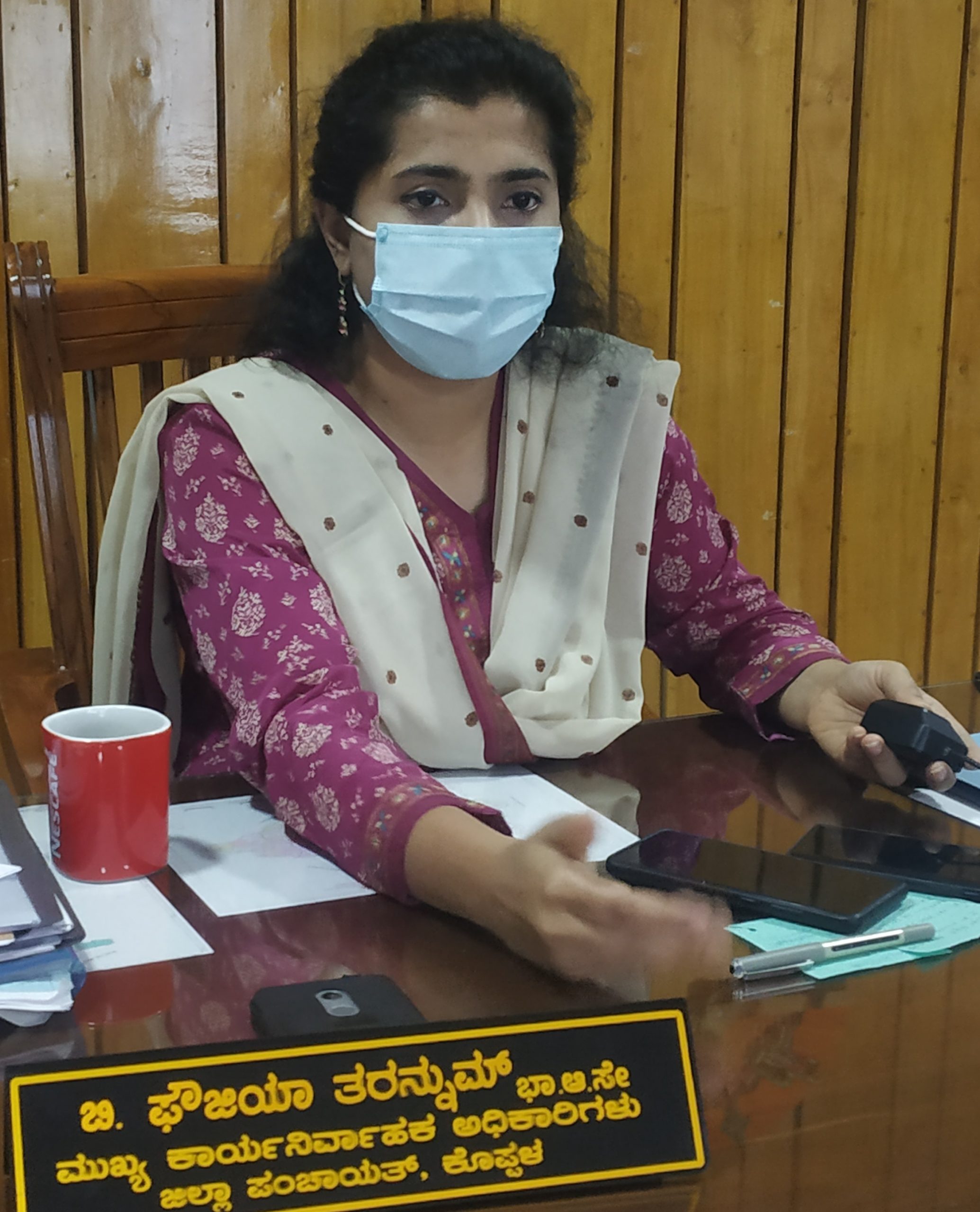 ಕೊಪ್ಪಳ : ಜಿಲ್ಲಾ ಪಂಚಾಯಿತಿಆಡಳಿತದಲ್ಲಿ ಹೊಸ ಸಂಚಲನವನ್ನು ಮೂಡಿಸಿದ ಸಿಇಓ ಬಿ.ಫೌಜಿಯಾ ತರನ್ನುಮ್ ಒಬ್ಬ ಮಹಿಳಾ ಖಡಕ್ ಅಧಿಕಾರಿಯಾಗಿ ಹೊರಹೊಮ್ಮಿದ್ದಾರೆ..!