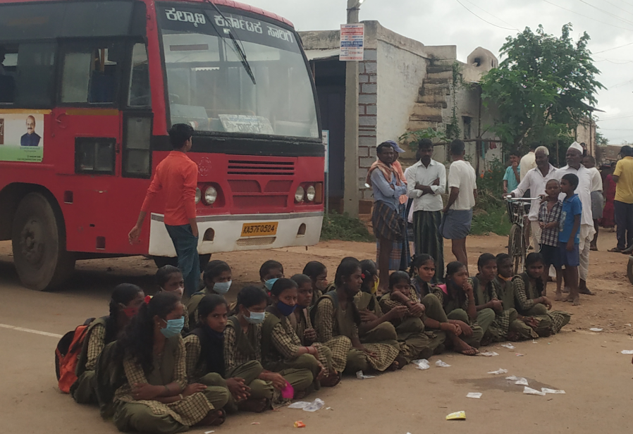 ಕೊಪ್ಪಳ : ಜಿಲ್ಲೆಯ ಕುಷ್ಟಗಿ ತಾಲೂಕಿನ ಪರಮನಹಟ್ಟಿ ಹಾಗೂ ಕೋನಾಪೂರ ಗ್ರಾಮದ ಶಾಲಾ ವಿದ್ಯಾರ್ಥಿಗಳು ತಮ್ಮ ಗ್ರಾಮಗಳಿಗೆ ಬಸ್ ಸಂಚಾರಕ್ಕೆ ಒತ್ತಾಯಿಸಿ ಜಾಗೀರ ಗುಡದೂರು ಗ್ರಾಮದಲ್ಲಿ ಬಸ್ ತಡೆದು ಪ್ರತಿಭಟನೆ ನಡೆಸಿದರು.
